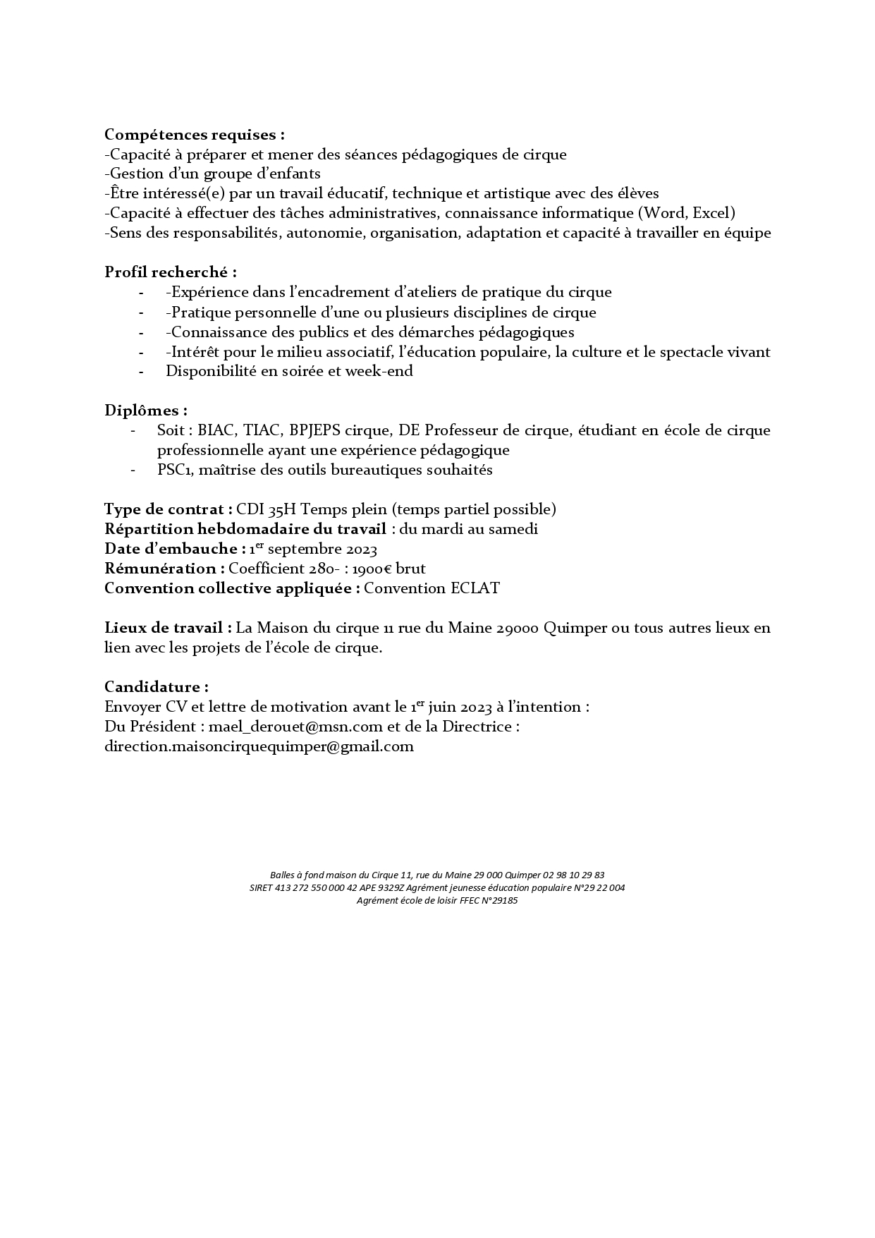 Cette formation permet de se préparer aux concours d’entrée en école de cirque (plus de 40 élèves en 6 ans).